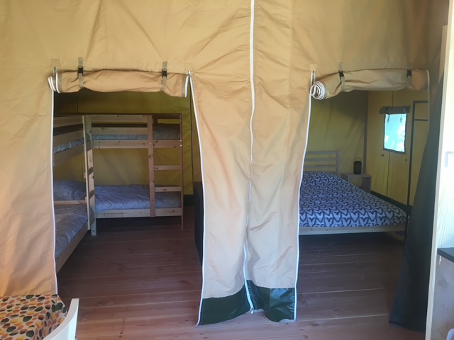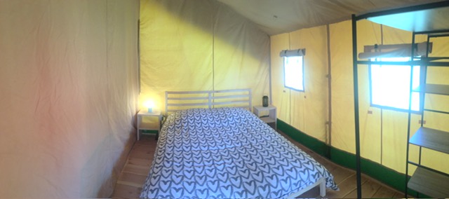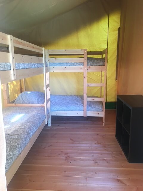 Op Camping Le Petit Chaumont bevinden zich 3 prachtige Safari Lodge tenten. Wel kamperen in een tent, maar van alle gemakken voorzien. Een heerlijke ouderslaapkamer met 2 persoonsbed, en een kinderkamer met maar liefst 2 stapelbedden. De bedden zijn opgemaakt bij aankomst, jullie hoeven alleen jullie tassen uit te pakken en te genieten. En jullie hond is ook welkom om mee te komen.
